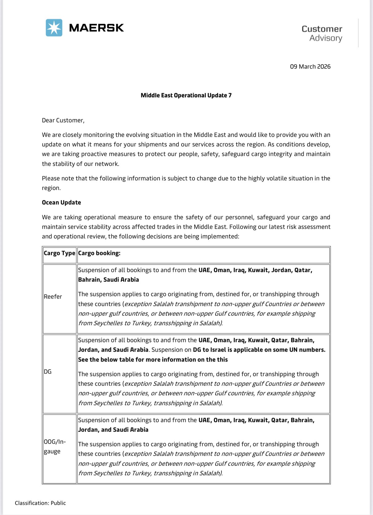 The MAERSK ocean cargo ship company has SUSPENDED shipping to, from or through most countries in the Middle East due to the ongoing Special Combat Operation by Israel and the United States, against Iran. This suspension of services is a CATASTROPHIC development.
