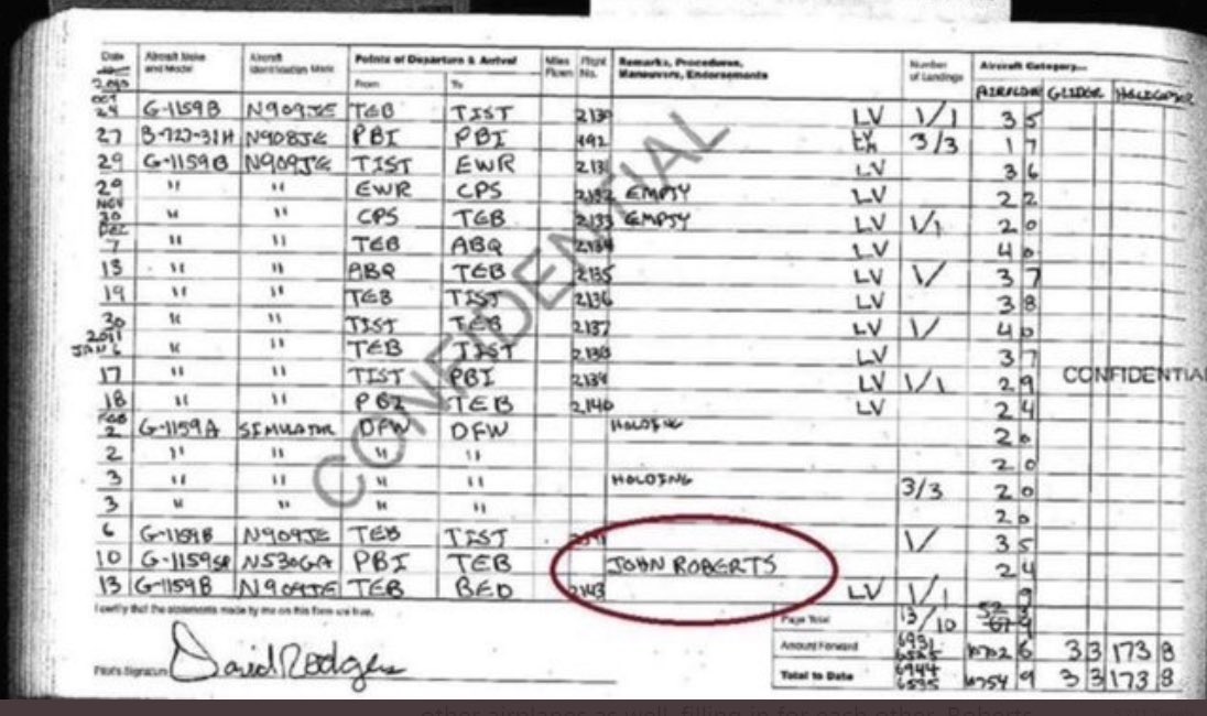 Hal Turner Remark: Maybe it's time to release the unredacted Epstein Files on the "John Roberts" who was reportedly listed as a passenger in what is purported to be the flight logs to Epstein Island? Below is the specific page I am referring to: