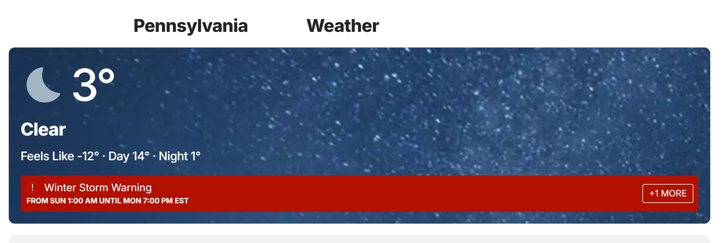 Just for laughs, I also checked the weather at the "Bugout" location in Pennsylvania this morning: