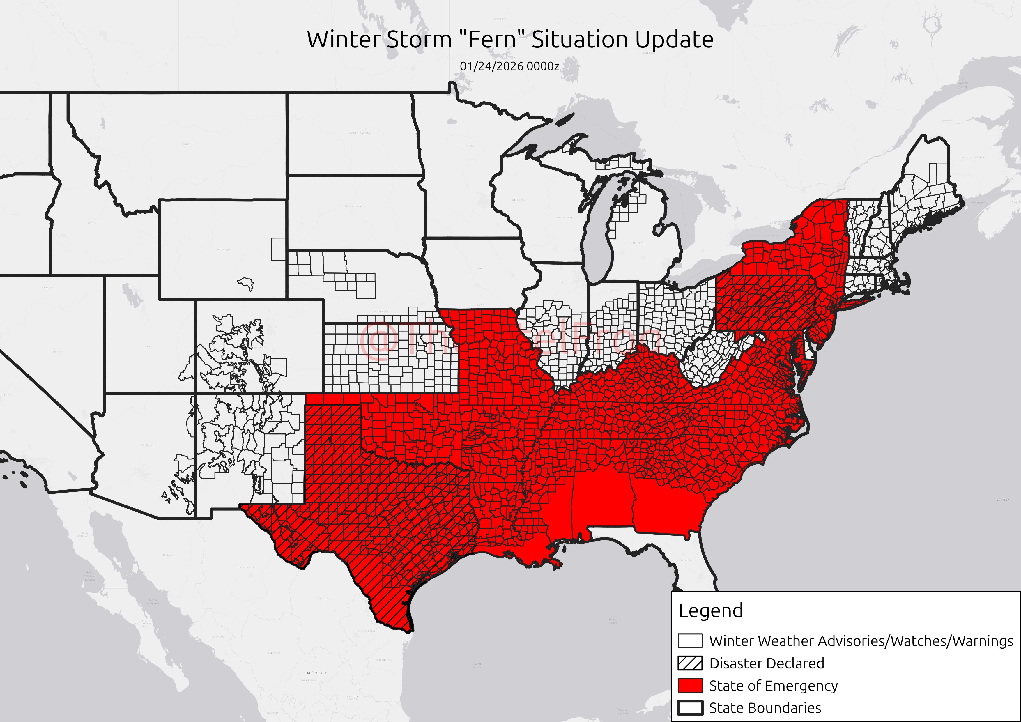 The forecasts have prompted declarations of states of Emergency in the states shown below: