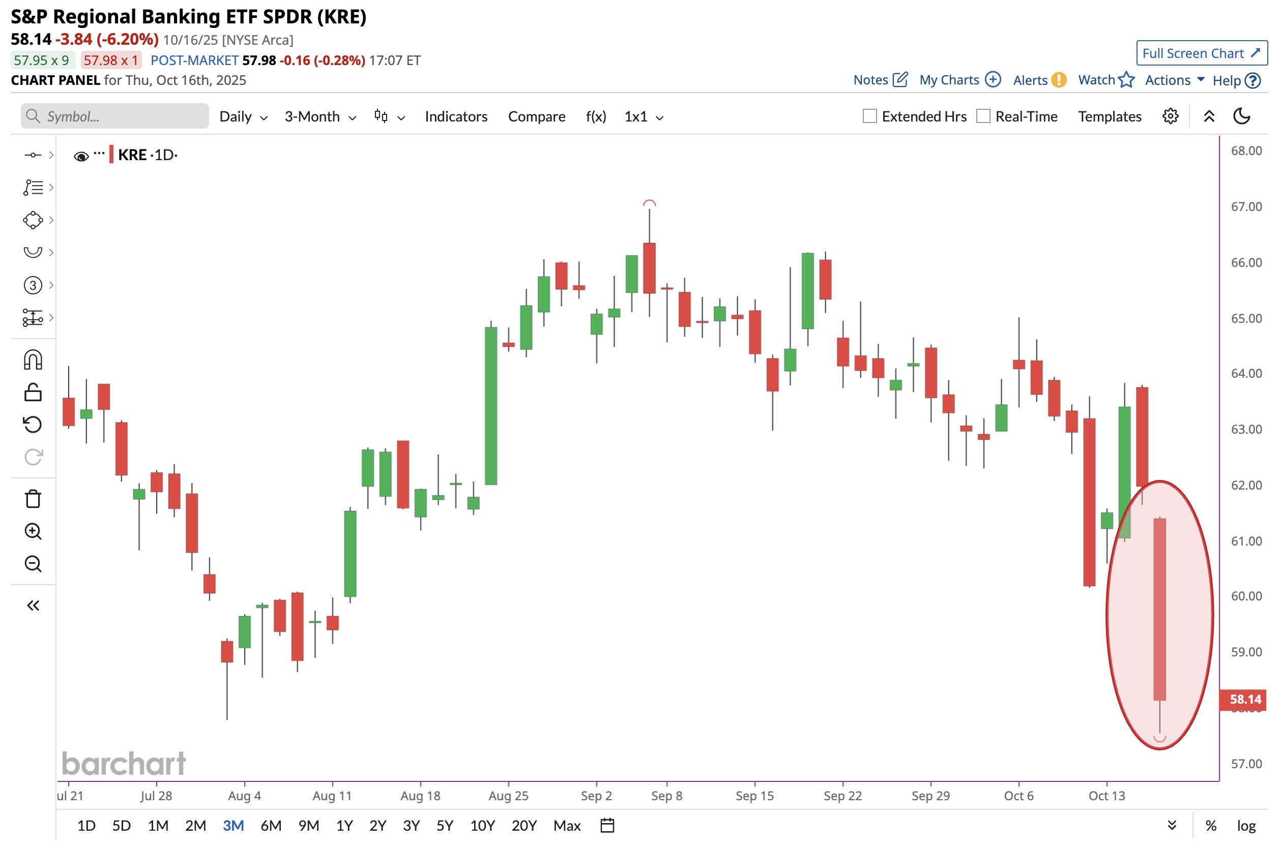 Stock Values of Regional Banks began plummeting today, losing about six percent in stock value in ONE DAY: