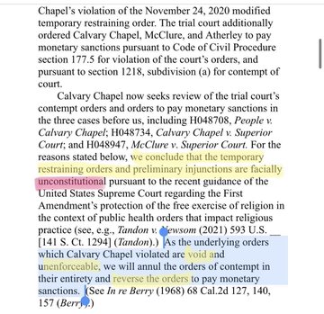 Moreover, the court fully ANNULLED the Contempt of Court Sanctions (fines) levied upon one such church, as the Orders for which the church was found in Contempt, were facially void.