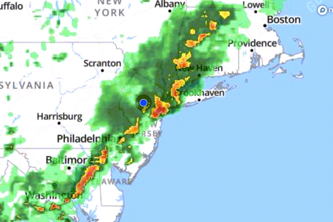 The first time was during Superstorm Sandy. The second time is . . . TODAY. But the weather radar doesn't seem THAT bad:
