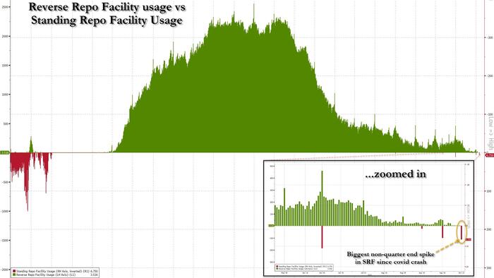 Here is where the Reverse Repo is today (Green) --- empty? Versus the standing Repo (Red):