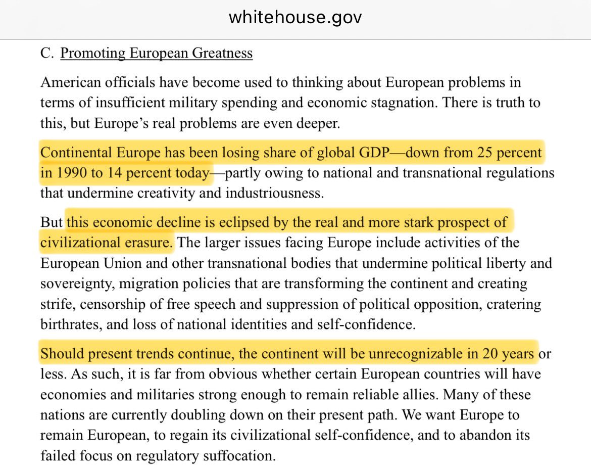 The United States view of Europe is stark. "Should present trends continue, the continent will be unrecognizable in 20 years."