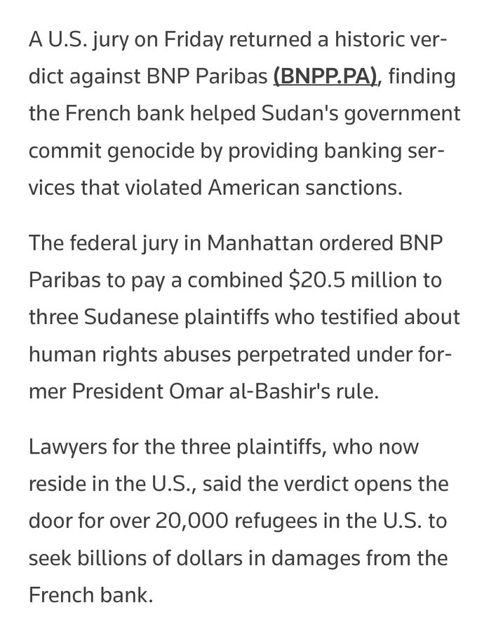 For those wondering what the big deal is, BNP Paribas is the second largest bank in Europe and the eighth largest bank IN THE WORLD.