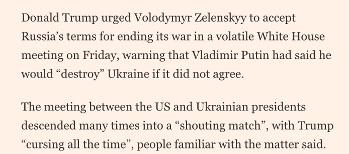 From the Financial Times of London about the Trump-Zelensky Meeting: